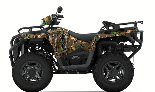 | Dotări | Troliu Polaris cu o greutate de 1.134 kg, Oglinzi, extensie rack frontal, bară de protecție față, priză tip brichetă în consolă, port de încărcare a bateriei, apărători pentru mâini, mânere de susținere pentru pasager, sistem Lock & Ride de atașare rapidă a accesoriilor, sistem de control electronic al accelerației (ETC), sistem de asistență la coborârea în pantă (ADC) |