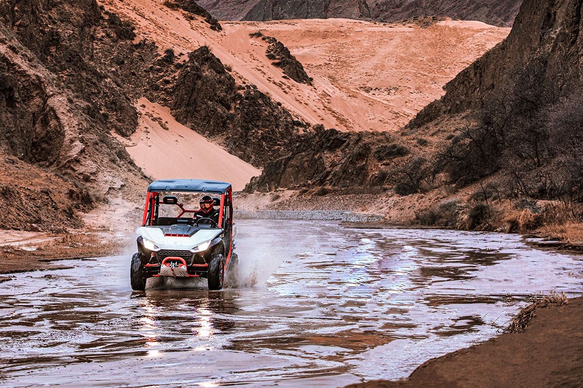 | Dotări | Troliu electric de 1587.6 kg, cârlig de remorcare omologat, volan reglabil, centuri de siguranță în trei puncte, bară de protecție față și spate, plafon, plase de siguranță |